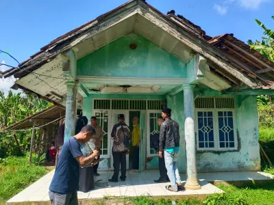 Verifikasi Bangunan: Tim memastikan rumah utama masih layak huni. Visual yang diviralkan sebagai rumah rusak ternyata adalah bangunan kandang ayam di bagian belakang rumah.